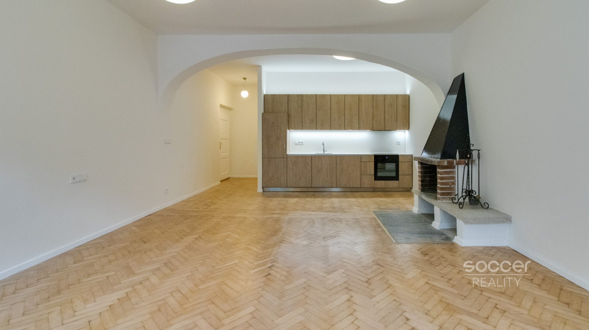 Po vstupu do bytu vejdete do prostorné předsíně, která je ihned spojená s velkým otevřeným prostorem, kde se nachází kompletně vybavená kuchyňská linka se všemi spotřebiči včetně pračky. Koupelna je s vanou a WC dohromady.
